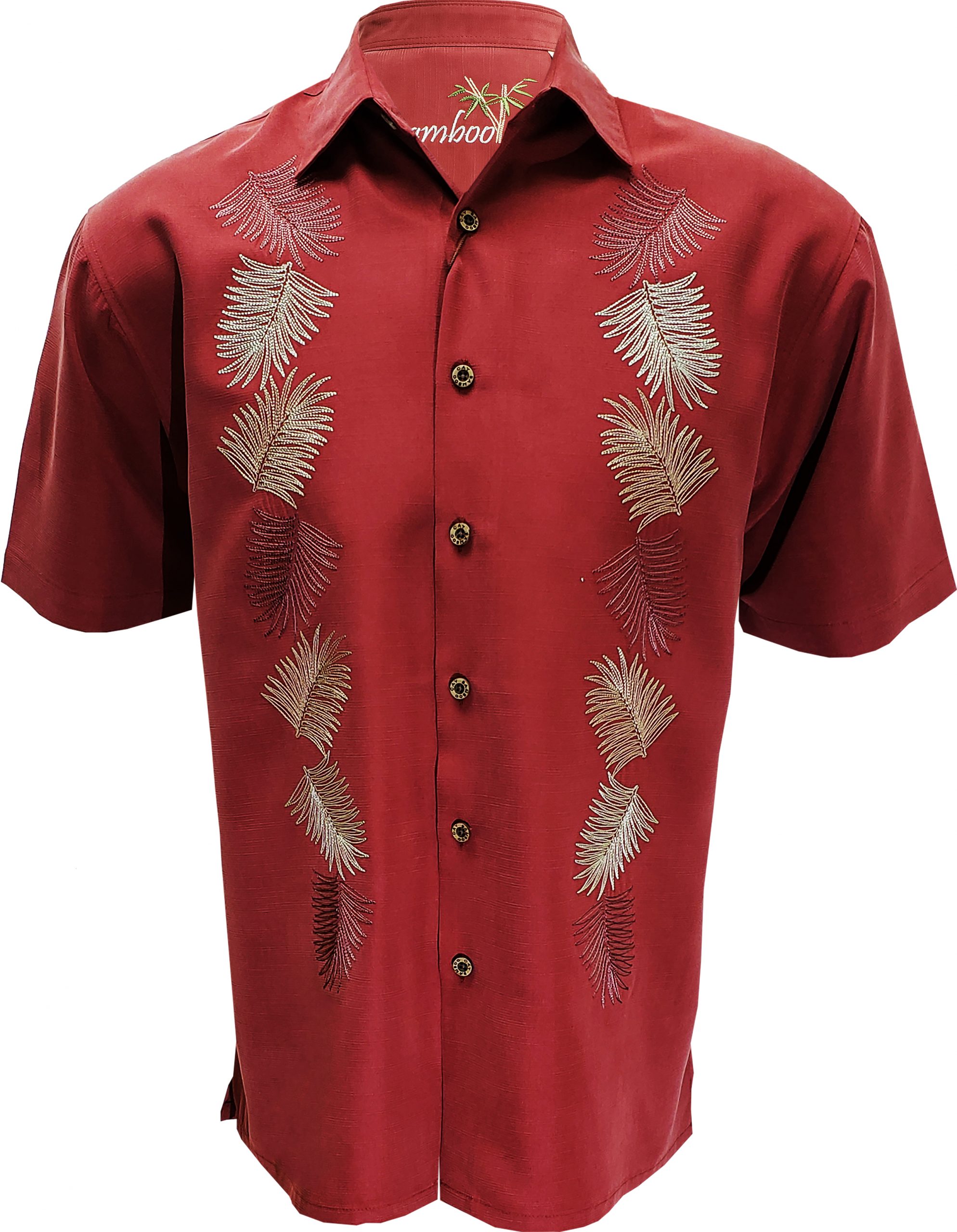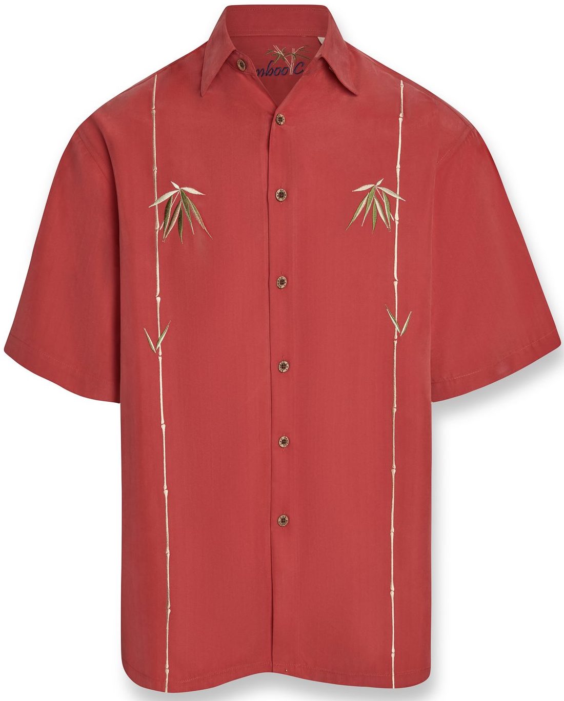 Short sleeve front embroidery of 2 vertical bamboo stems going down from top to bottom with a few bamboo leaves added to make this exquisite embroidered camp shirt a Bamboo Cay classic. Tasteful artwork done in a subtle manner, composed of thousands of stitches very much suitable for weddings, dinners, etc. Bamboo Cay will get you noticed without drawing attention to yourself.
