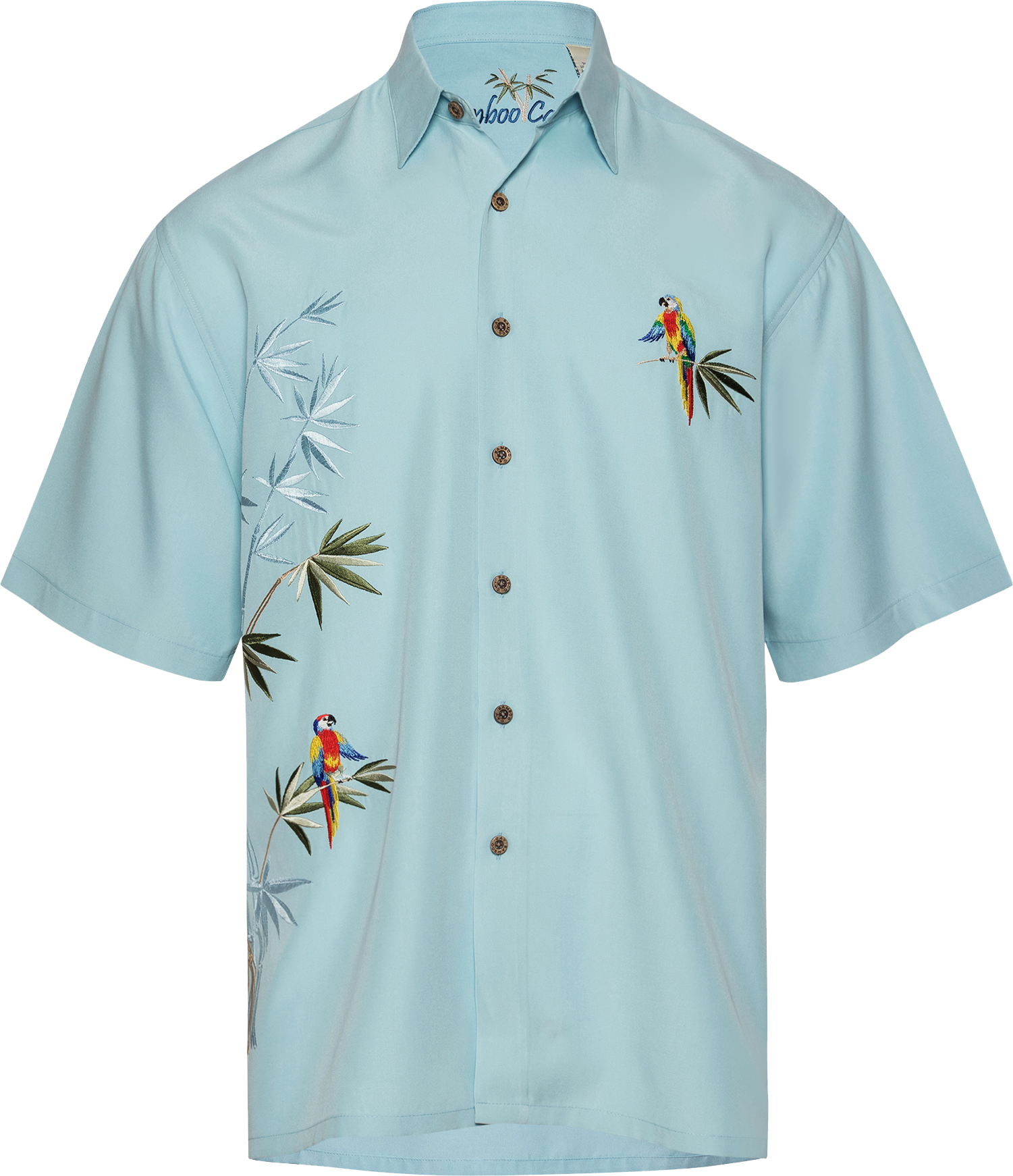 Our signature solid camp shirt featuring subtle embroidered trimmings underneath front placket and around neckband. Fabric is lightweight and has a mélange effect which gives an elegant appeal. There is a pocket with small trimming and coconut button. Comes with an extra button bag, point collar and split hems at bottom. Elegance in Paradise has high a color brilliance, good moisture absorption and superior dimensional stability. Bamboo Cay will get you will get noticed without drawing attention to yourself.