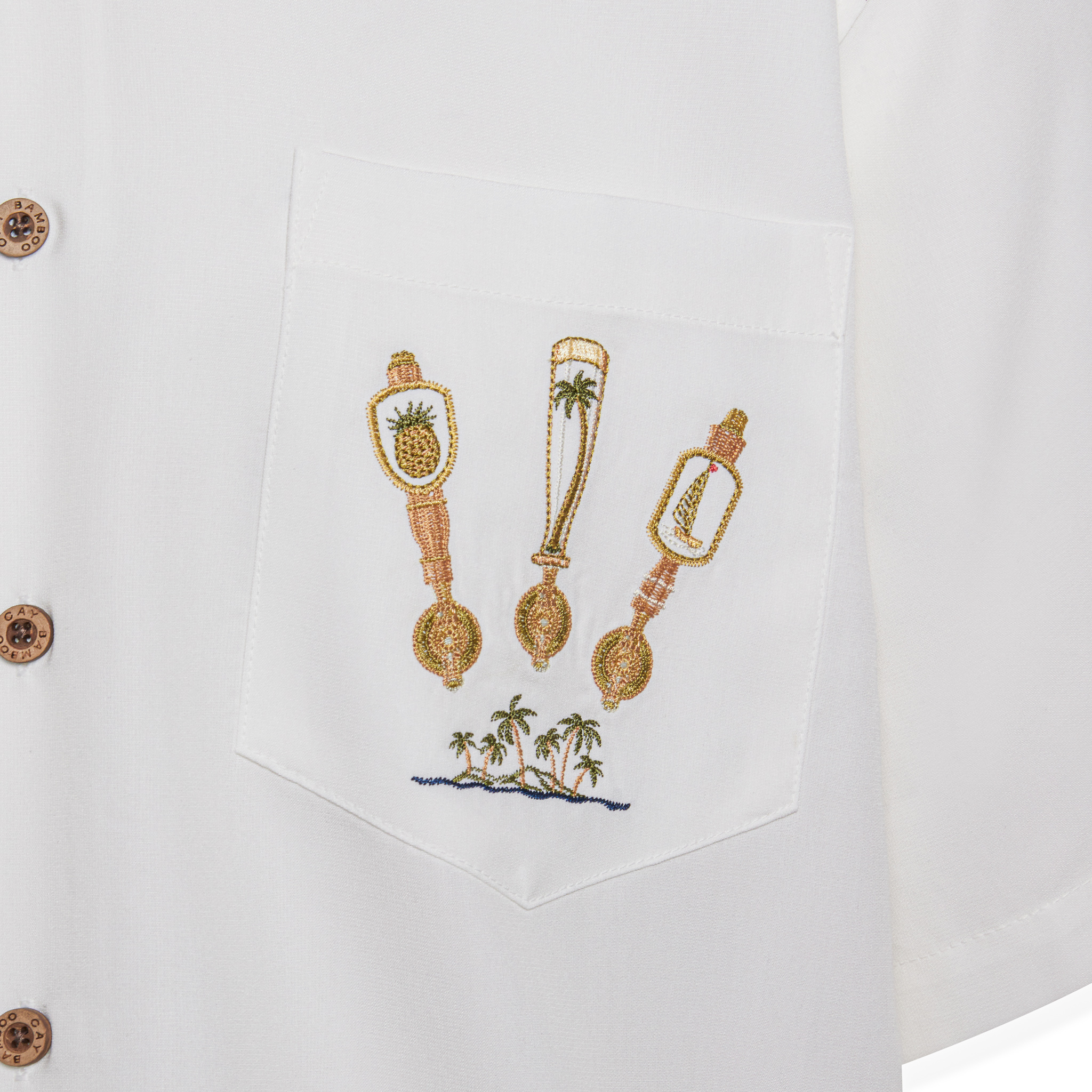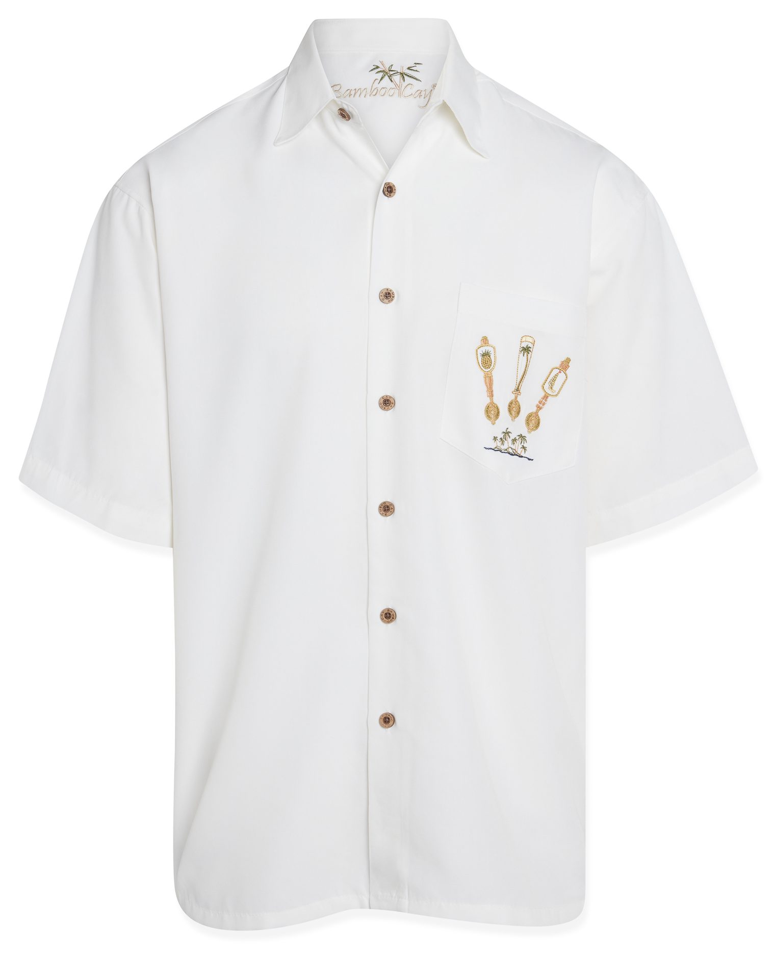 Who does not love beer and lots of it? Our original artworks and shirt design reflect the art of shirt-making at its best. Like a finely crafted brew, Bamboo Cay Island on Tap back embroidered camp shirt includes a front pocket with embroidered beer taps. Beautifully embroidered tropical beer taps on the wearer’s backside and a front embroidered pocket of the same design. Featuring a point collar and comfortable side vents all done on a modal blend fabric, this Bamboo Cay shirt will get you noticed without drawing attention to yourself.