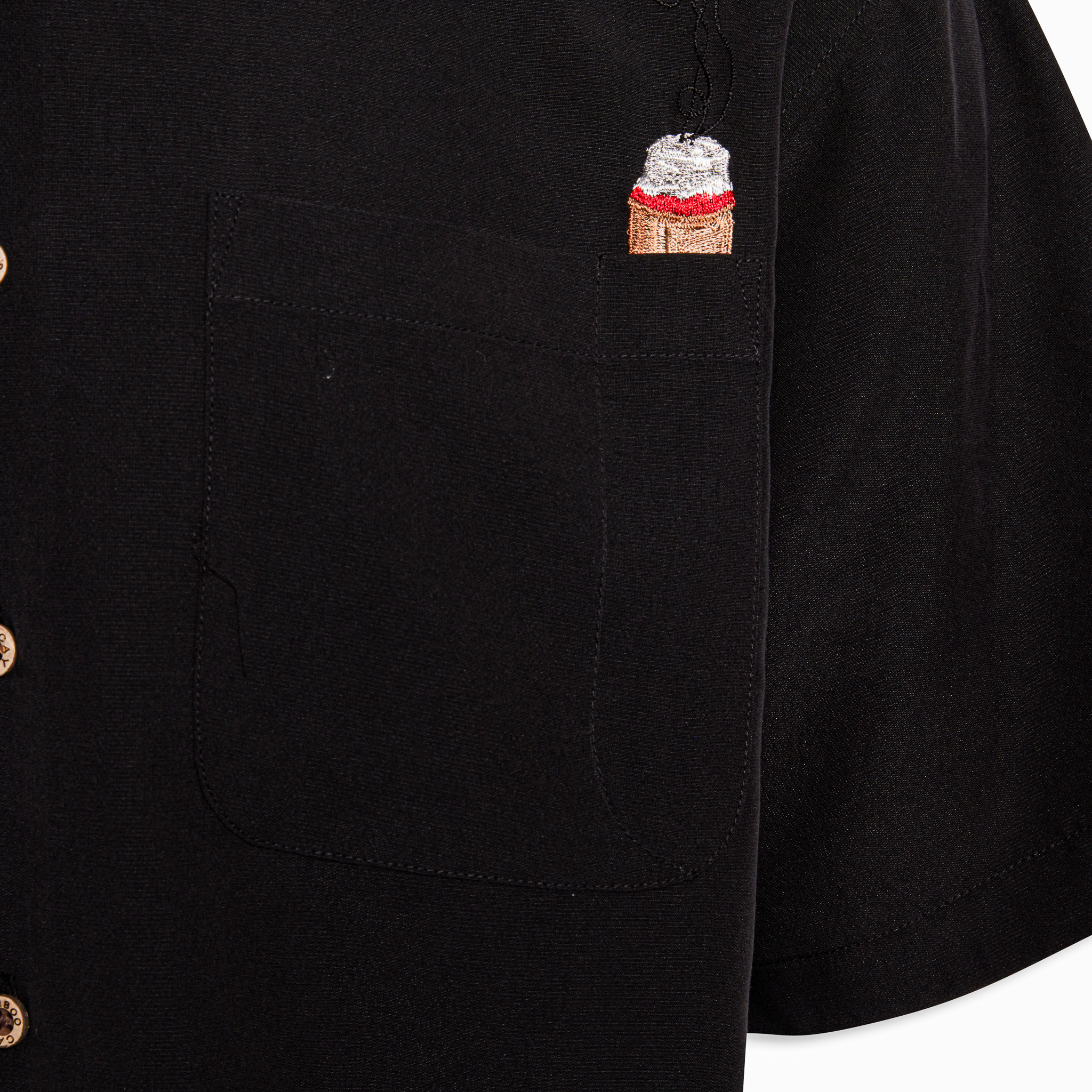 Well-crafted back embroidery design of a Bamboo Cay cigar rolling into a wave and splashing onto paradise island. Subtle musical motifs added to this paradise scene. Features a front pocket with the impression of a cigar inside of it. Over 140,000 stitches embossed on our signature modal blend fabric.