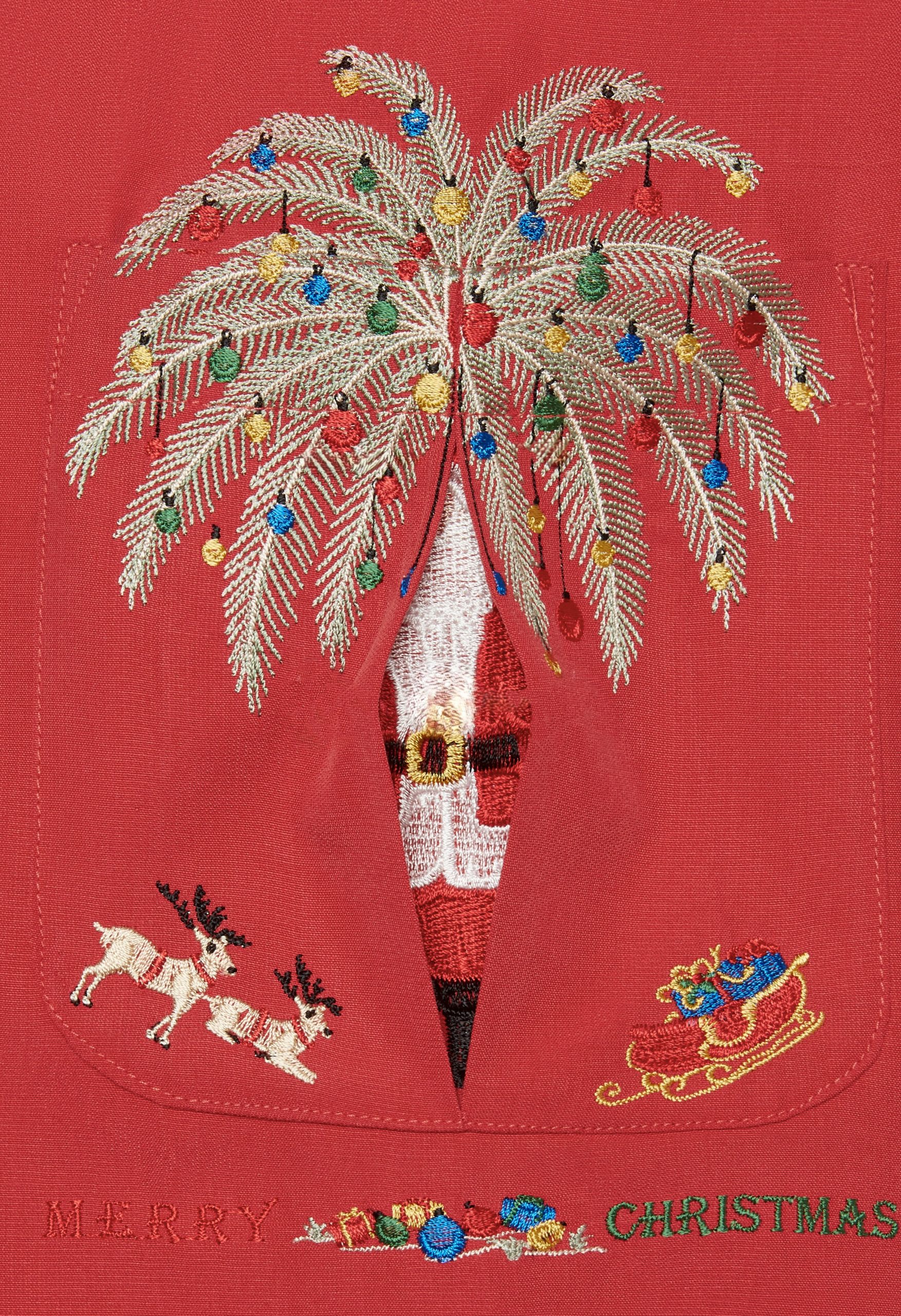 The ultimate holiday party shirt is here – the SECRET SANTA Bamboo Cay Short Sleeve Tropical Christmas Button Up Camp Shirt. This eye-catching button-up is the perfect way to stand out at any Christmas celebration. The vibrant tropical embroidery and holiday-themed design will have you feeling merry and bright, while the breathable modal blend fabric keeps you comfortable all night long. Whether you’re hosting a party or attending a family gathering, this stylish shirt is sure to be the talk of the event. To add onto all this spirit, Santa is in the slit pocket hiding.