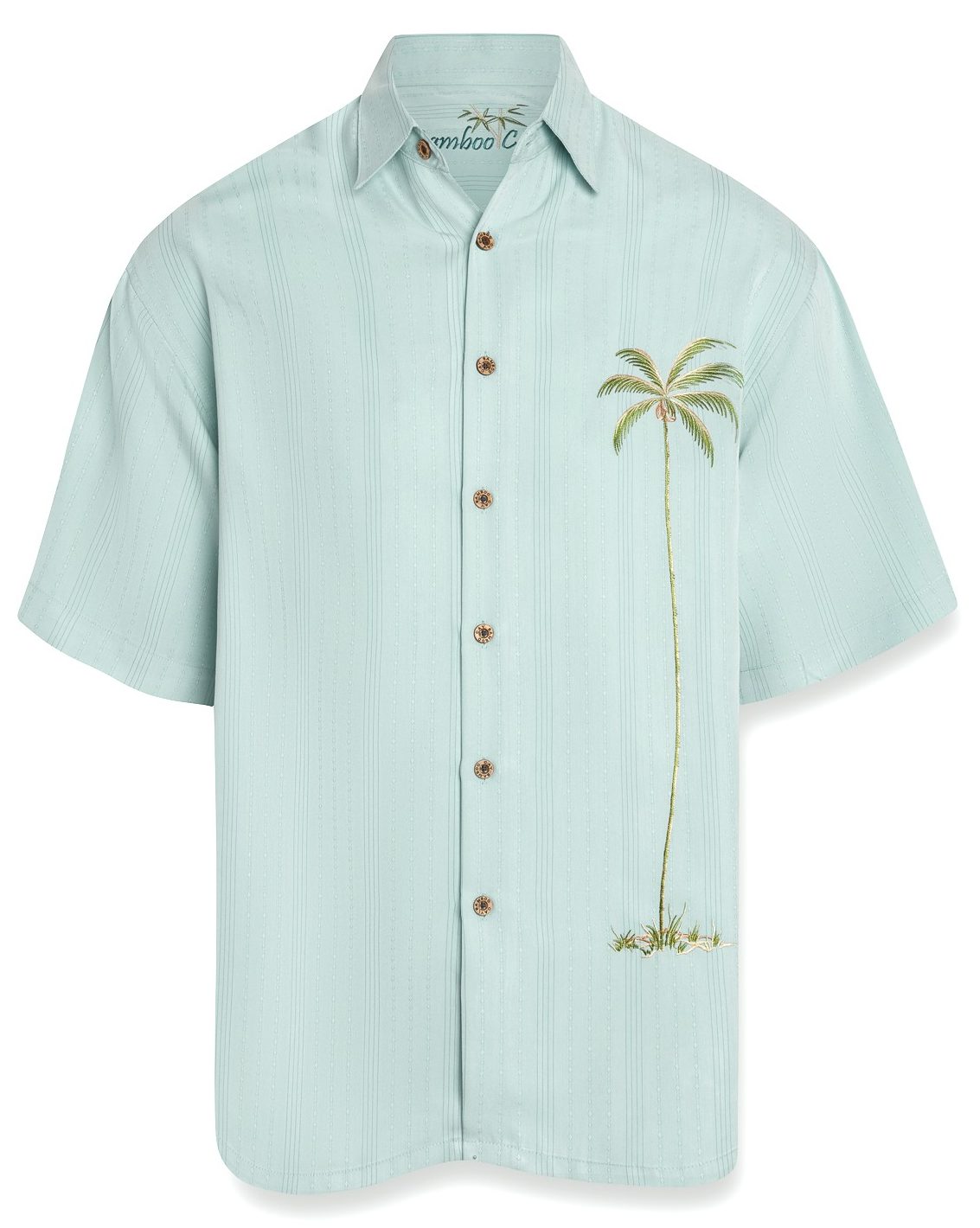 Bamboo Cay signature palm tree embroidered on the wearer’s left in a very subtle and simple yet elegant manner. Short sleeve camp shirt finished with a pointed collar, full-length front button closure and a split hem, embossed on a soft textured imported modal fabric that is also machine washable. Bamboo Cay will get you noticed without drawing attention to yourself. Come along with us and enjoy relaxing Bamboo Cay fine resort wear for men, designed for comfortable living in your paradise. Our goal is to bring the island lifestyle into your daily life.