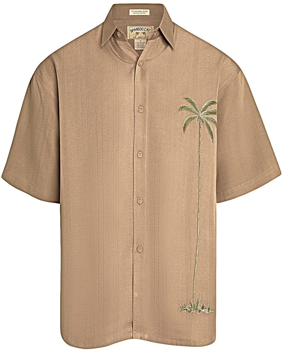 Bamboo Cay signature palm tree embroidered on the wearer’s left in a very subtle and simple yet elegant manner. Short sleeve camp shirt finished with a pointed collar, full-length front button closure and a split hem, embossed on a soft textured imported modal fabric that is also machine washable. Bamboo Cay will get you noticed without drawing attention to yourself. Come along with us and enjoy relaxing Bamboo Cay fine resort wear for men, designed for comfortable living in your paradise. Our goal is to bring the island lifestyle into your daily life.