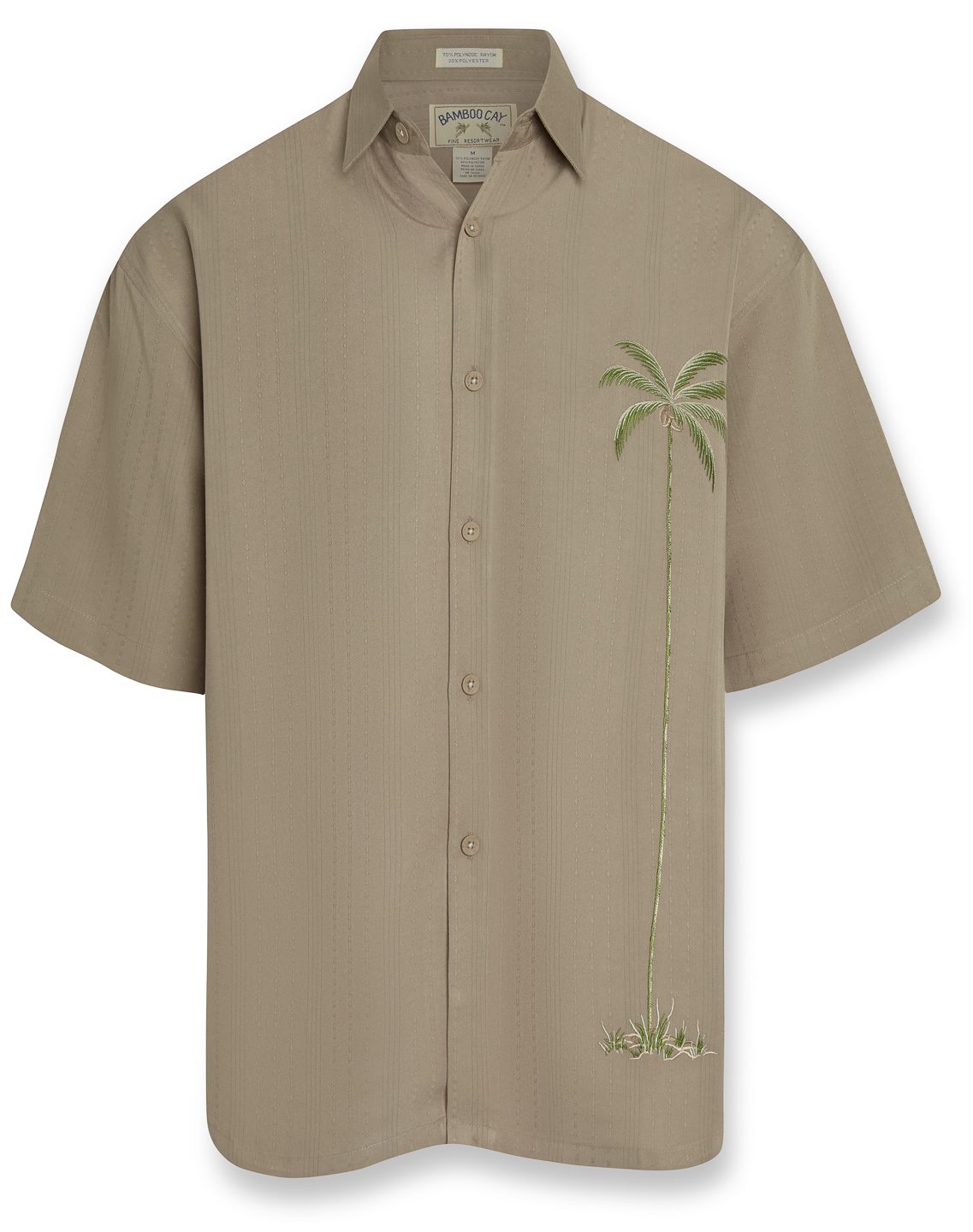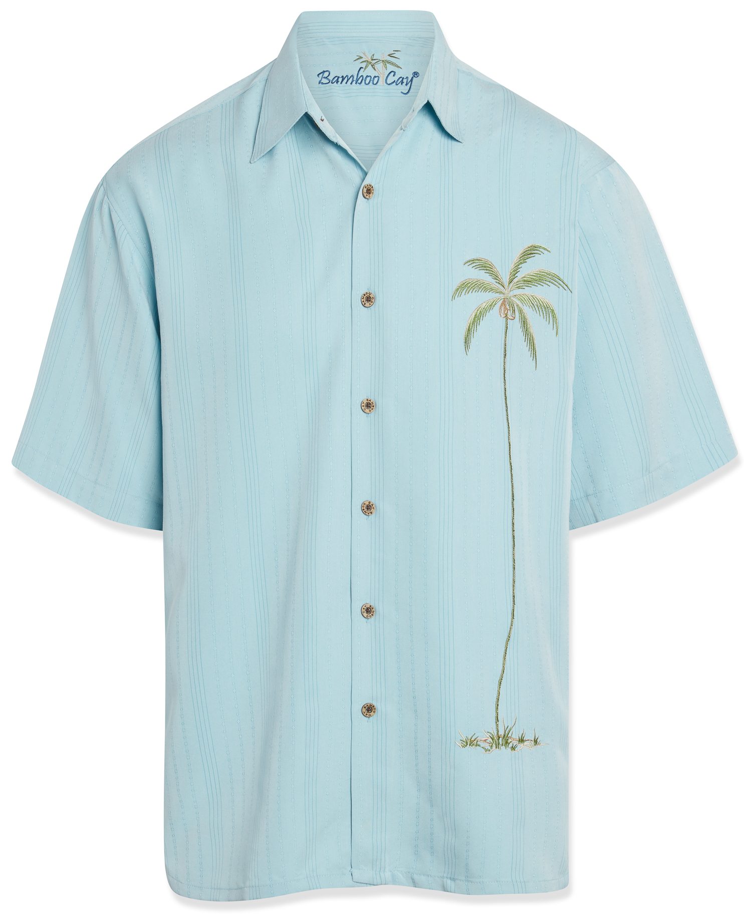 Bamboo Cay signature palm tree embroidered on the wearer’s left in a very subtle and simple yet elegant manner. Short sleeve camp shirt finished with a pointed collar, full-length front button closure and a split hem, embossed on a soft textured imported modal fabric that is also machine washable. Bamboo Cay will get you noticed without drawing attention to yourself. Come along with us and enjoy relaxing Bamboo Cay fine resort wear for men, designed for comfortable living in your paradise. Our goal is to bring the island lifestyle into your daily life.