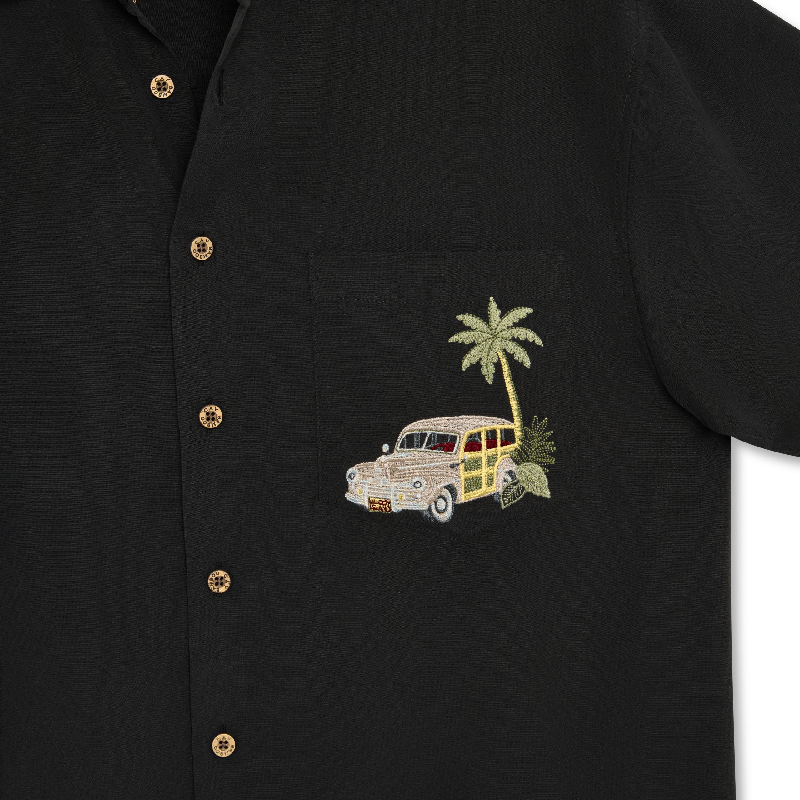Bamboo Cay novelty embroidery of a tropical woody car parked and enjoying the ambiance of Bamboo Cay Island. Featuring a point collar and comfortable side vents on a soft modal fabric, this Bamboo Cay shirt will get you noticed without drawing attention to yourself.