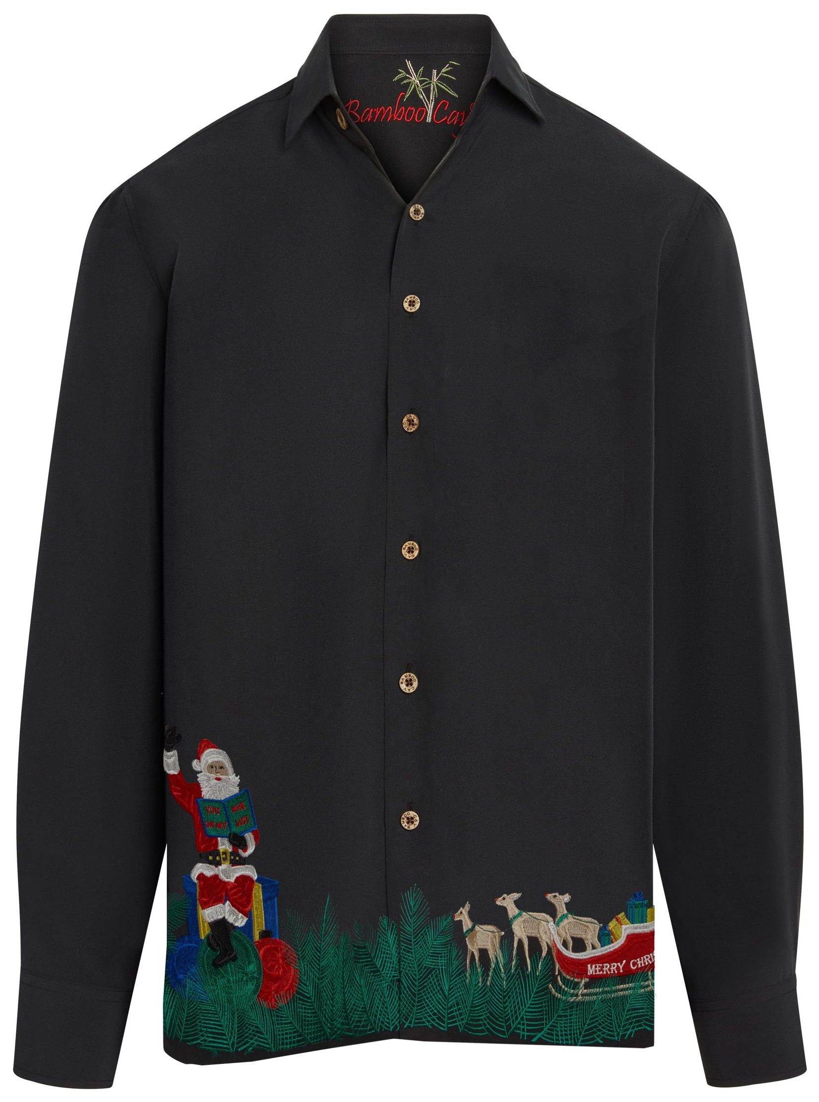 You Are On My List Embroidered Christmas Long Sleeve Camp Shirt