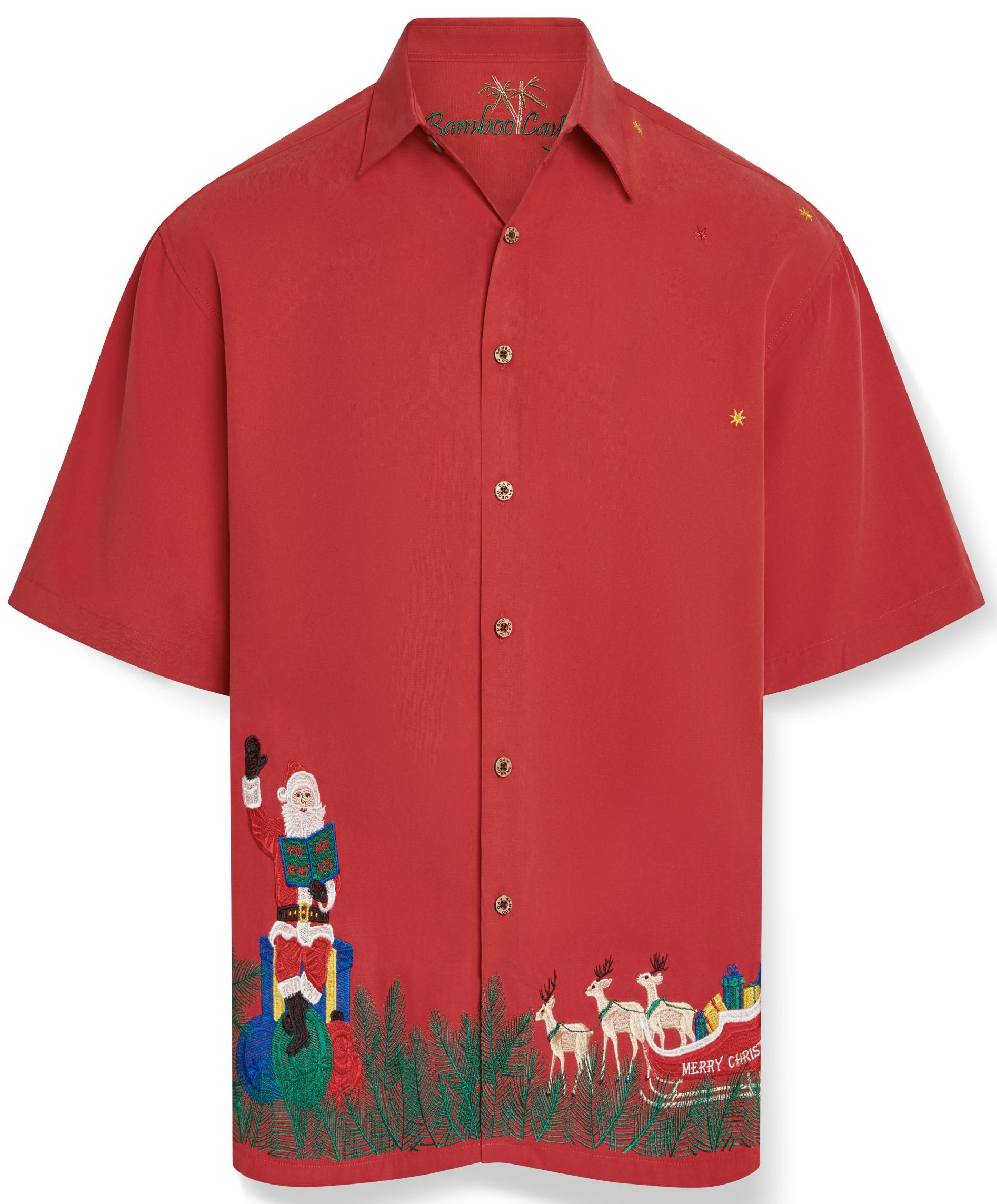 This versatile Bamboo Cay button-up is the ultimate fusion of comfort and holiday cheer. The breathable, moisture-wicking fabric will keep you feeling fresh and relaxed, while the playful Christmas print adds a touch of festive flair to any outfit. Whether you’re sipping hot cocoa by the fireplace or mingling at the annual ugly sweater party, this shirt is guaranteed to put you on Santa’s nice list.